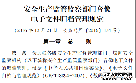 安全生產監管監察部門音像 電子文件歸檔管理規