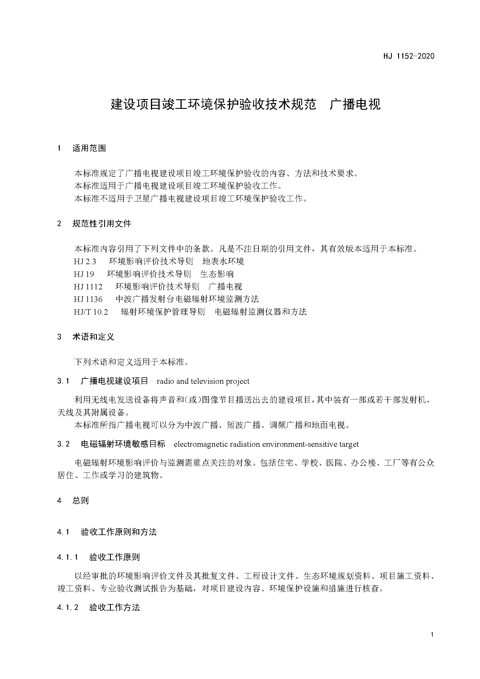 四、《建設項目竣工環境保護驗收技術規范 廣播電視》(HJ 1152-2020)