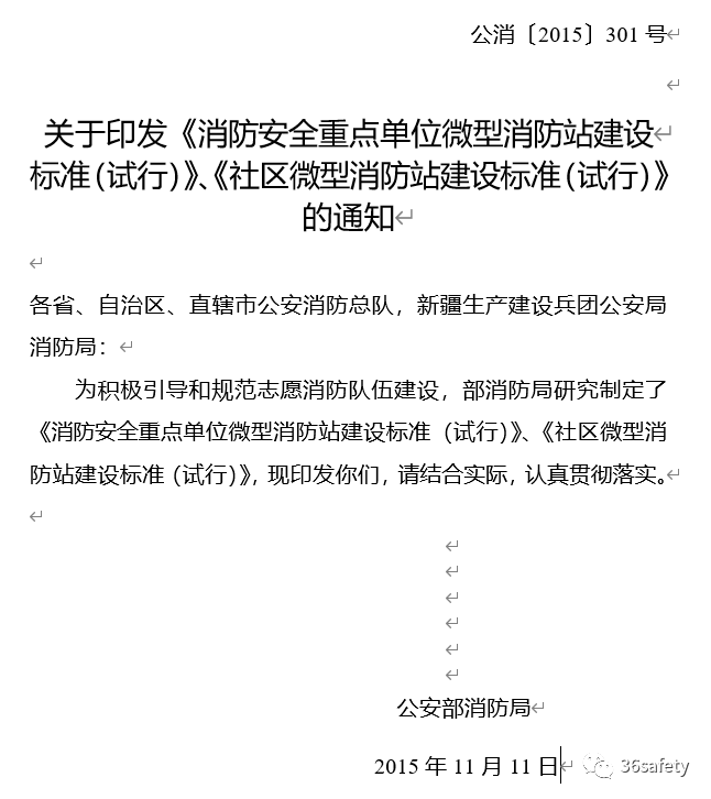 在2015年時,公安部消防局下發(fā)過一個文件,文件編號是公消〔2015〕301號--關(guān)于印發(fā)《消防安全重點單位微型消防站建設(shè)標(biāo)準(zhǔn)(試行)》、《社區(qū)微型消防站建設(shè)標(biāo)準(zhǔn)(試行)》的通知,文件中對于“消防安全重點單位”和“社區(qū)”如何建立微型消防站等提出了具體的要求。現(xiàn)在距離這個文件的下發(fā)已經(jīng)過去了幾年,公安部消防局也改制轉(zhuǎn)隸成了應(yīng)急管理部消防救援局,但是微型消防站的這項工作我們是依然繼續(xù)在做的,因為微型消防站有助于提高單位自防自救的能力。