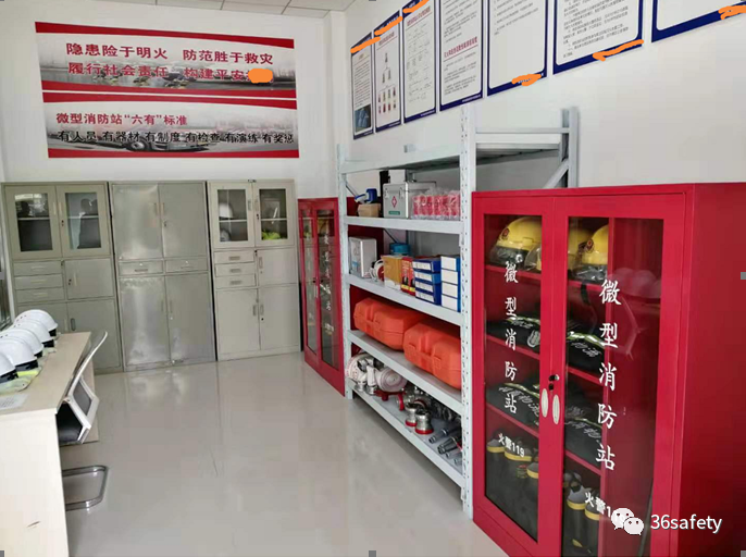 上述圖片是微型消防站內(nèi)部的照片,該微型消防站設(shè)置在首層的廠區(qū)辦公室內(nèi)。