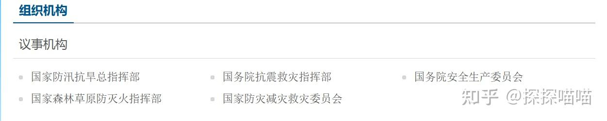 這里得和大家特別提一下,它和其他國務院組成部門不同的是,它有五個議事機構,這五個議事機構是咱們國家搶險救災的最高指揮部。