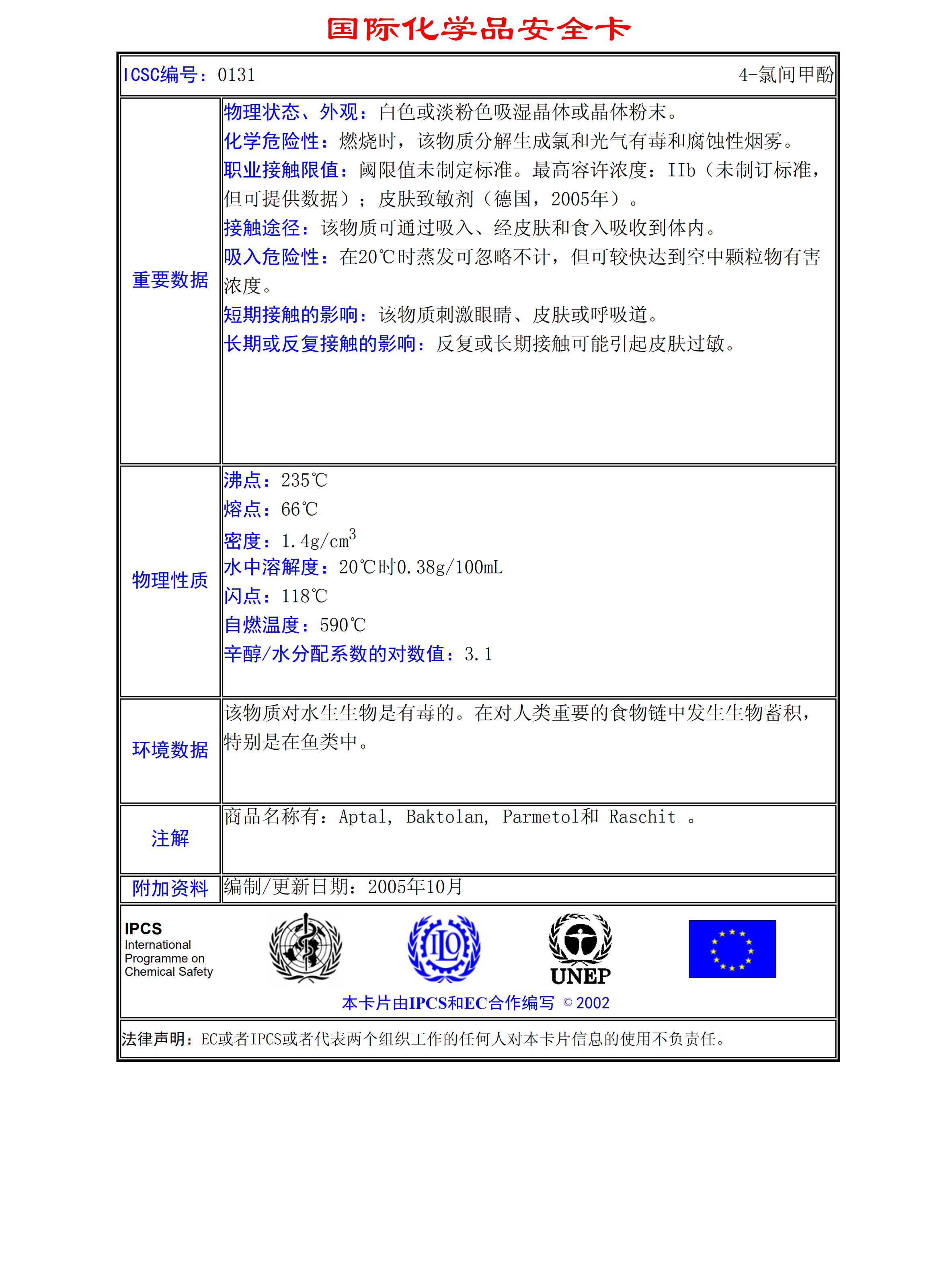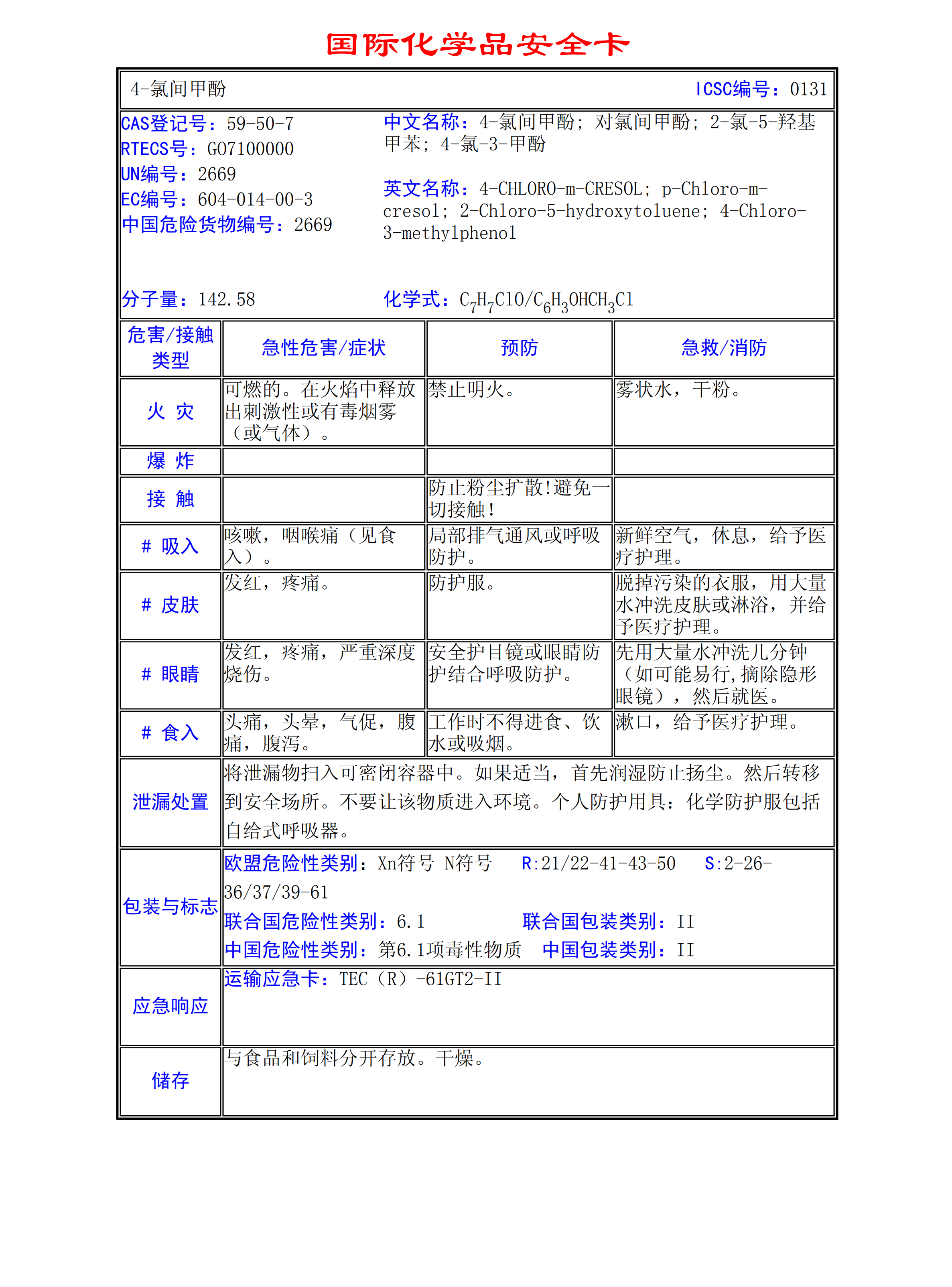 4-氯間甲酚MSDS