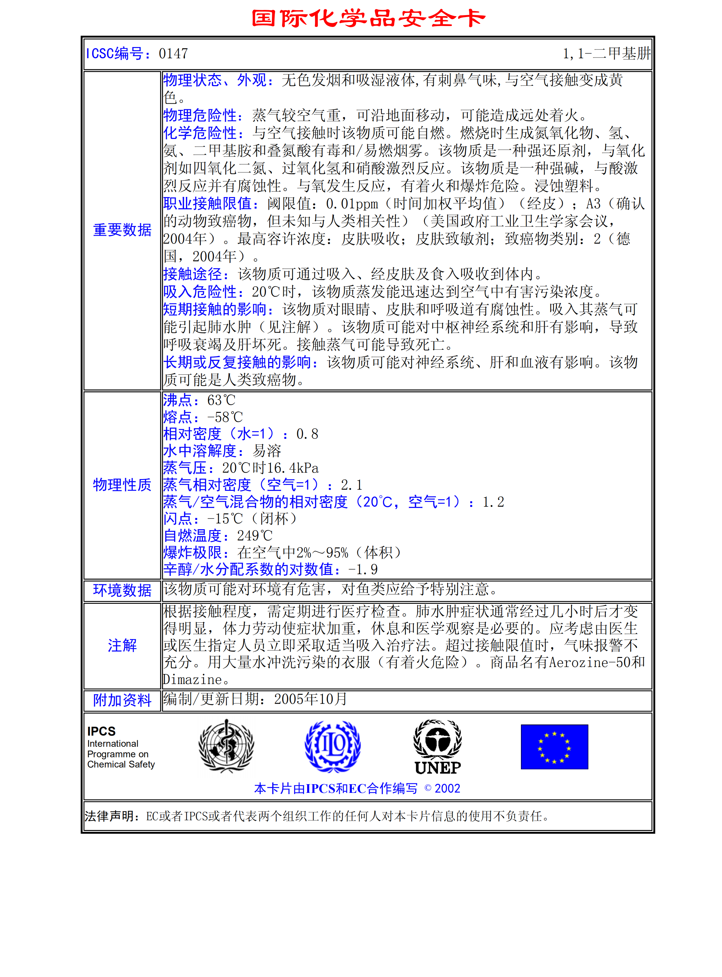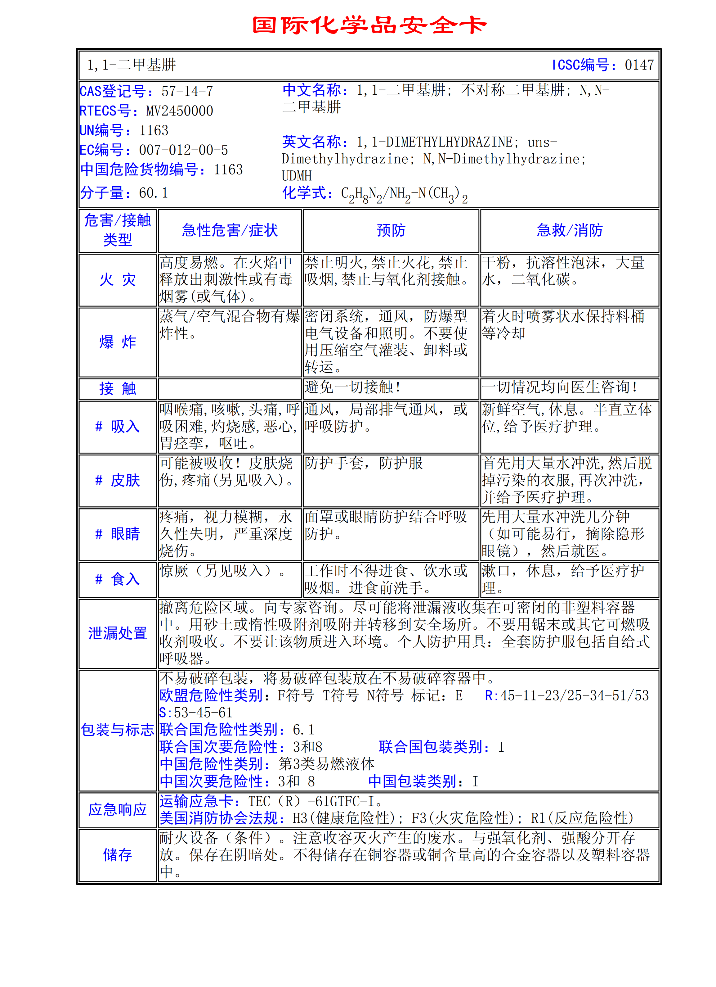 1,1-二甲基肼MSDS