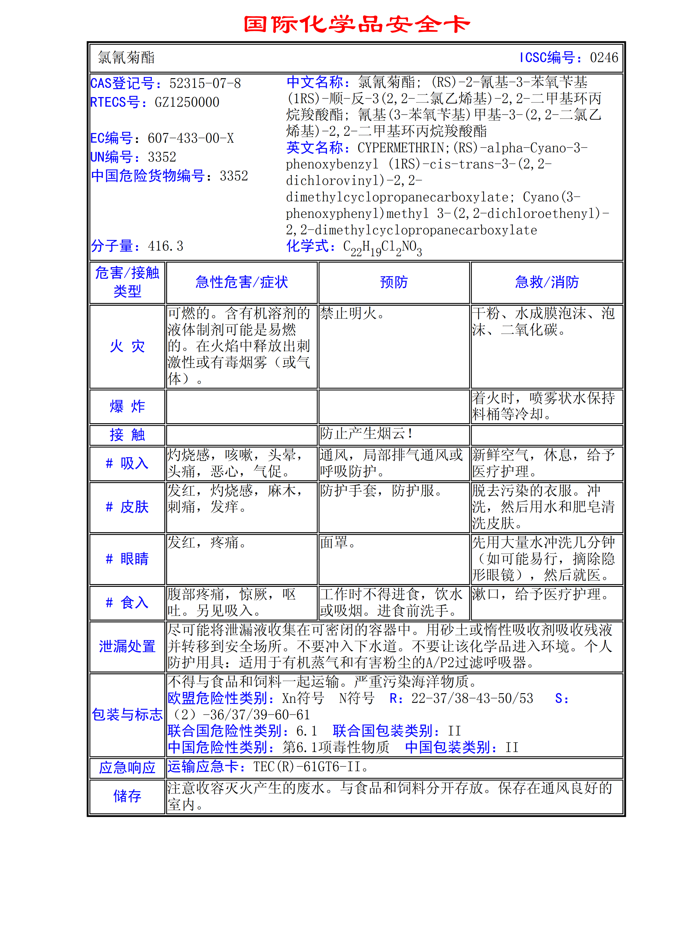 氯氰菊酯MSDS