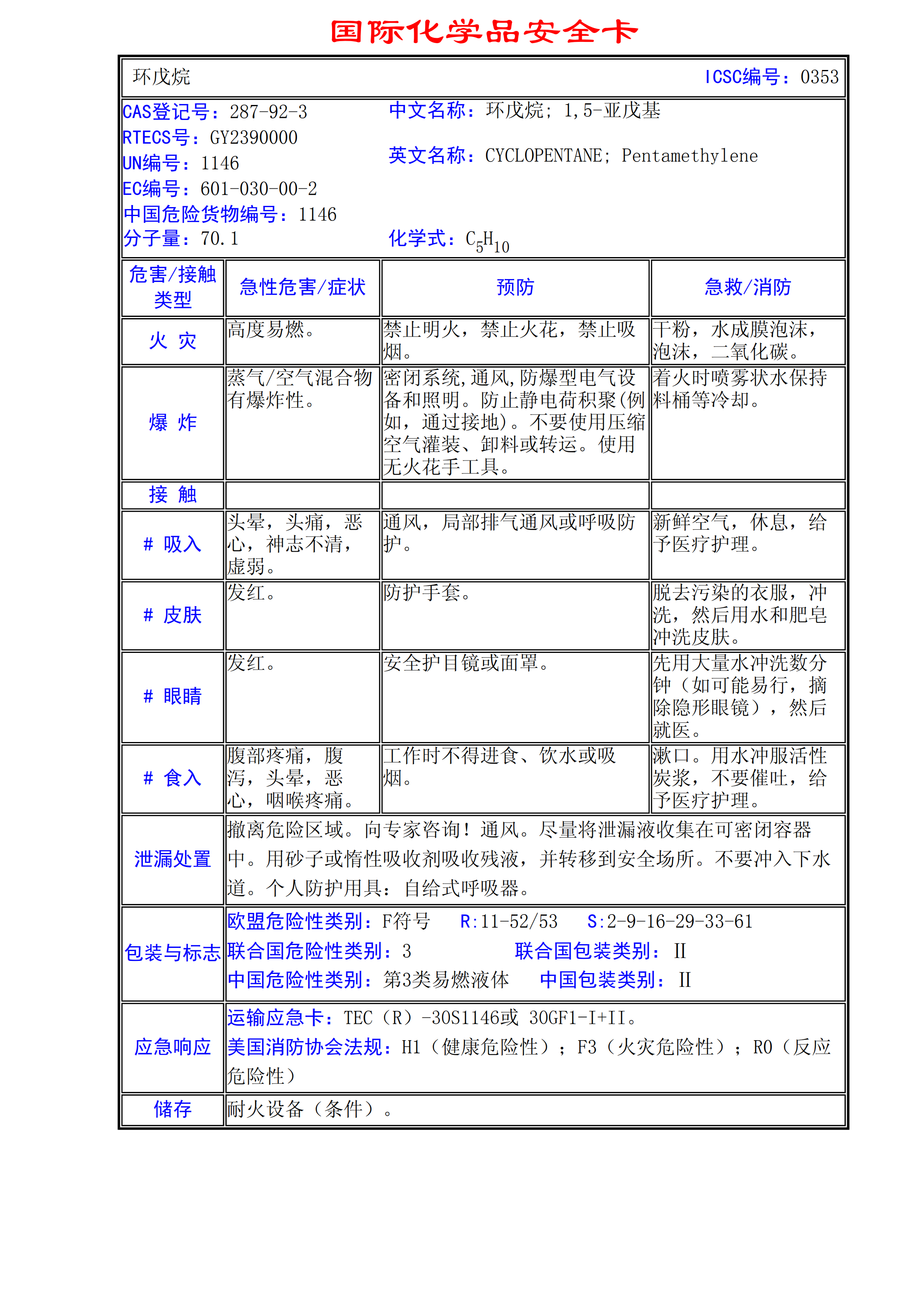 環戊烷MSDS