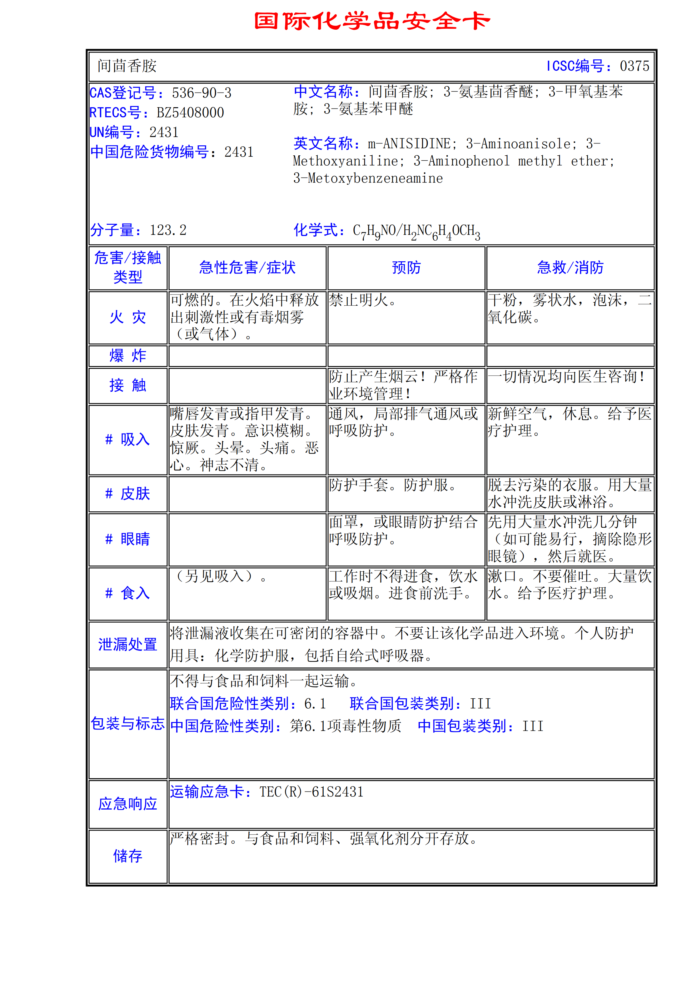 間茴香胺MSDS