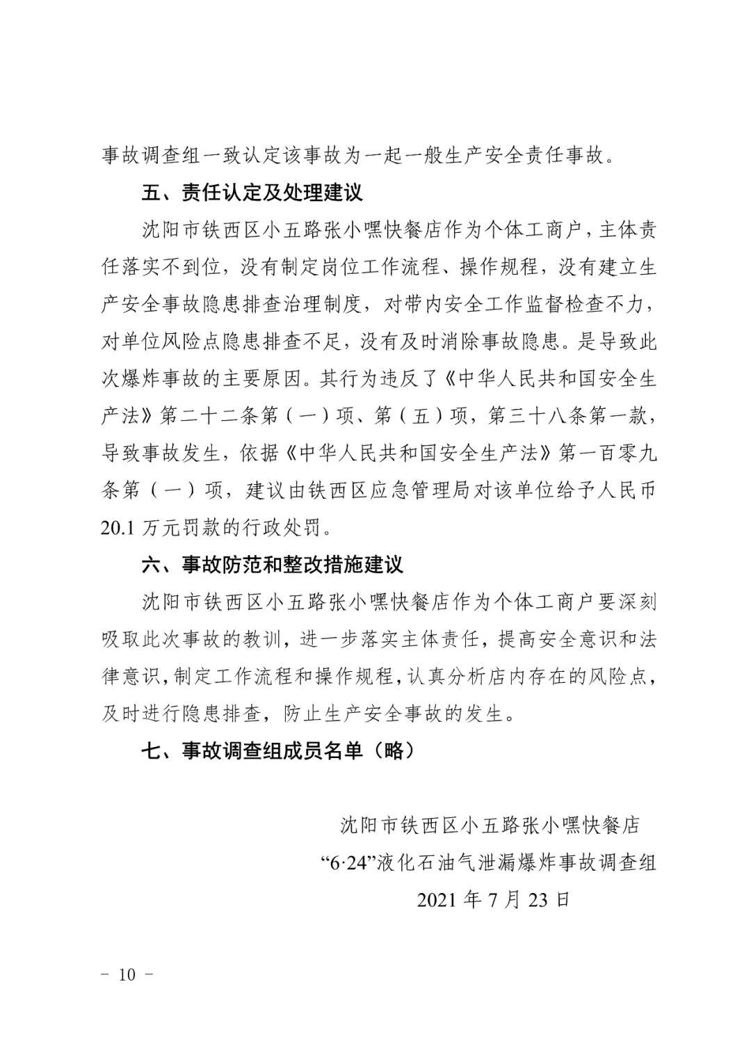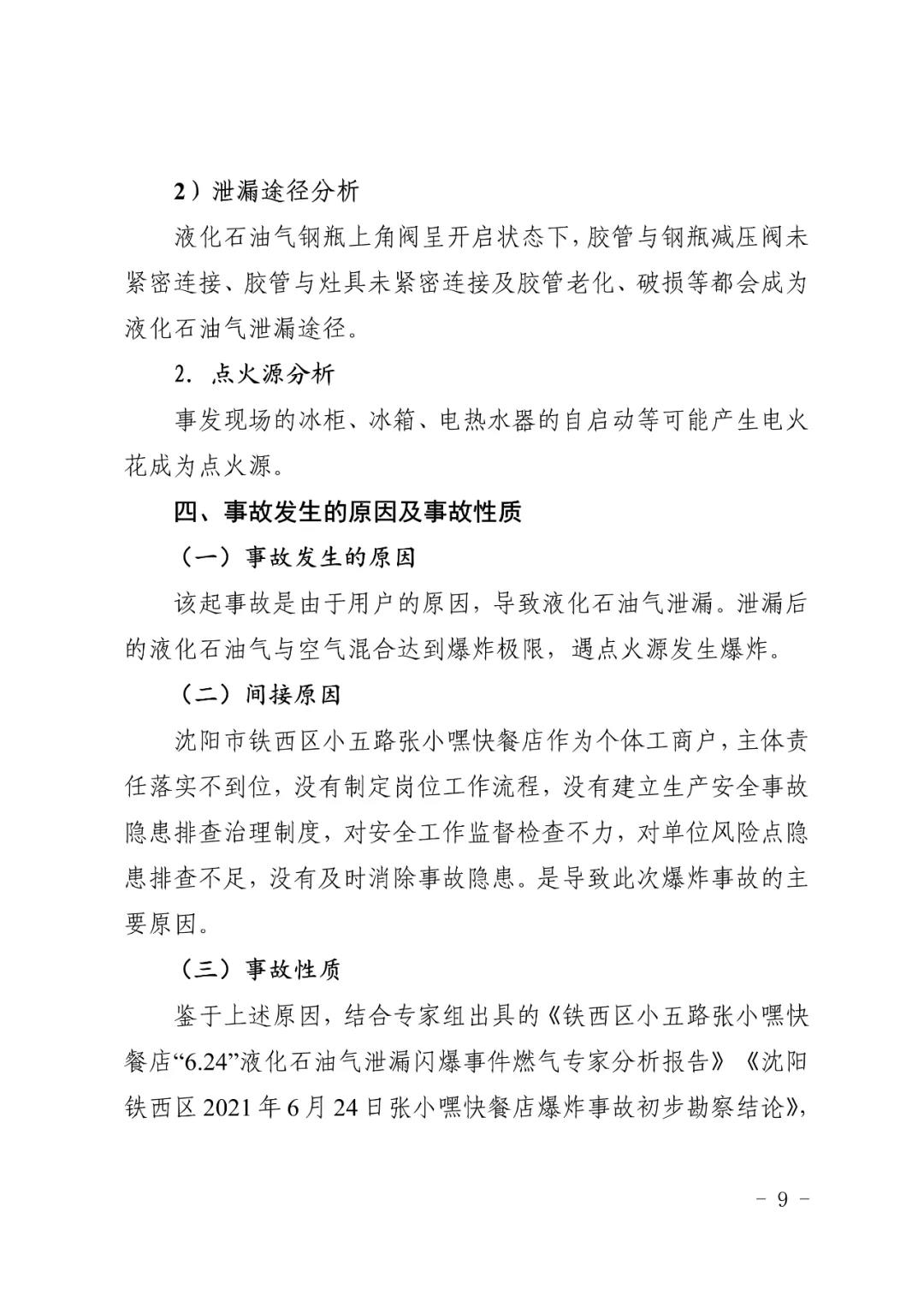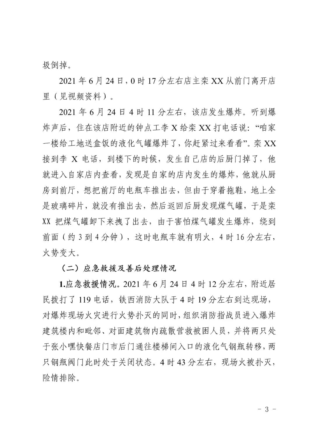 2021 年 6 月 24 日 4 時 11 分左右,位于沈陽市鐵西區小五路 54 號 3 門,沈陽市鐵西區小五路張小嘿快餐店內發生液化石油氣泄漏爆炸,無人員傷亡,直接經濟損失 70 余萬元。