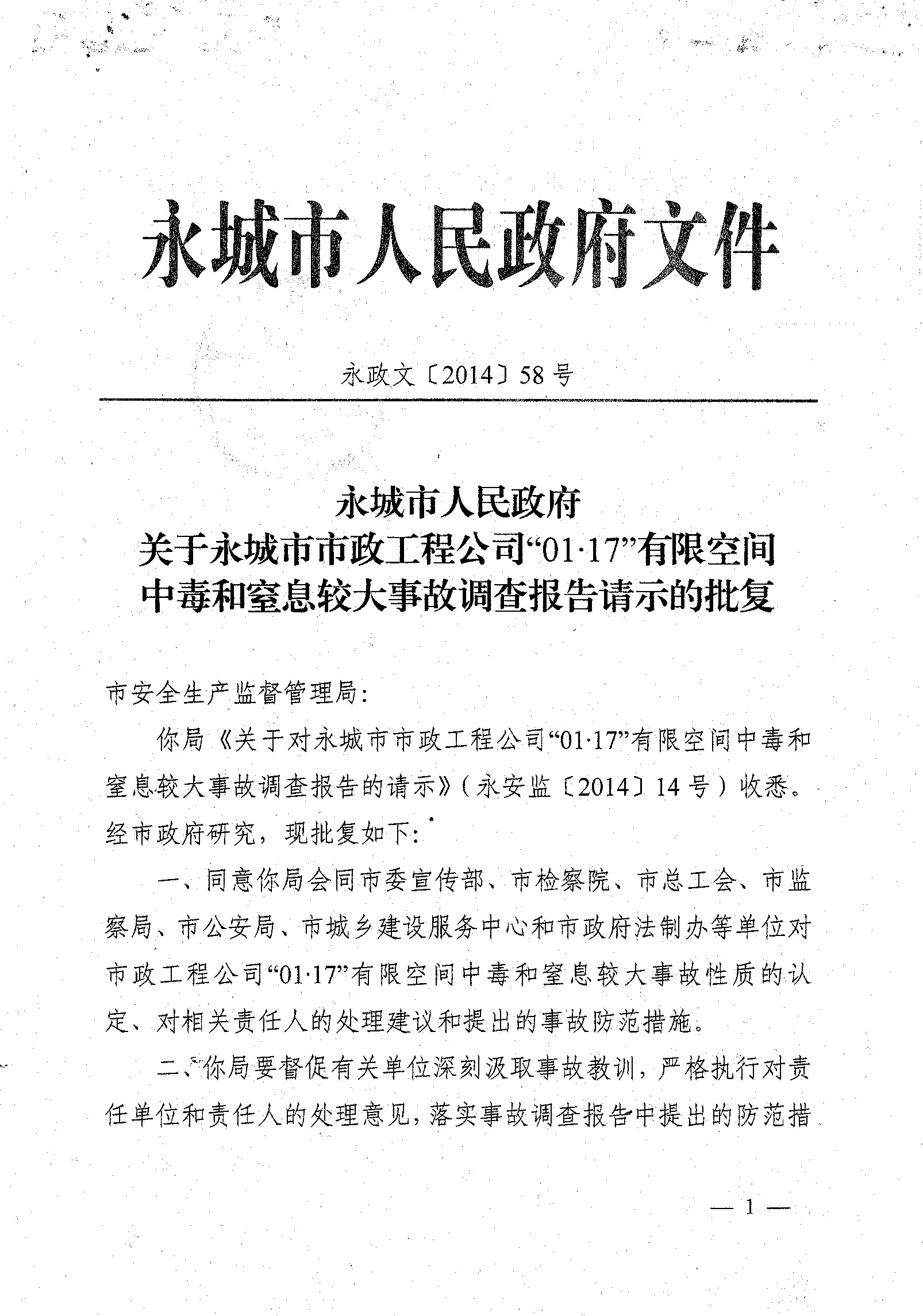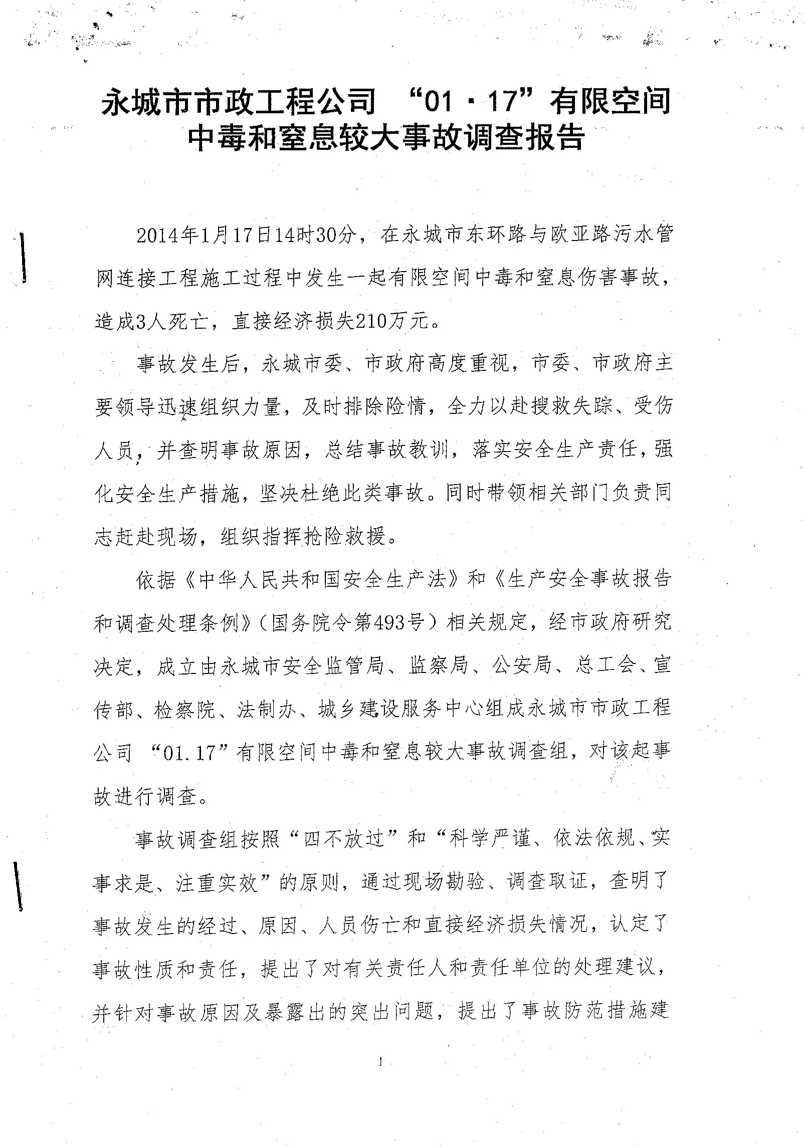 永城市01.17中毒窒息事故調(diào)查報(bào)告