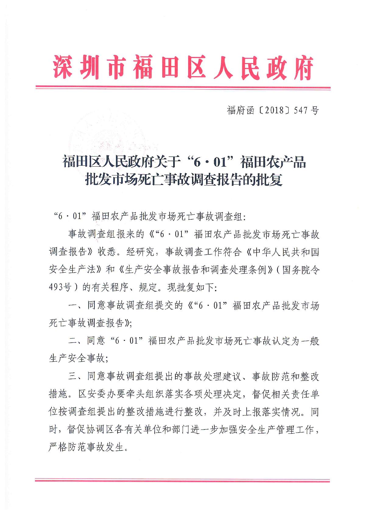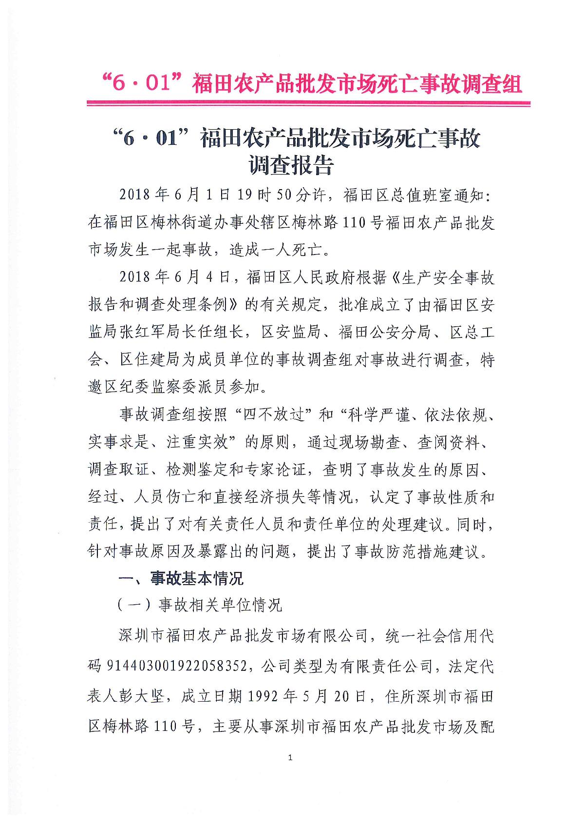 “6.01”福田農產品批發市場死亡事故調查