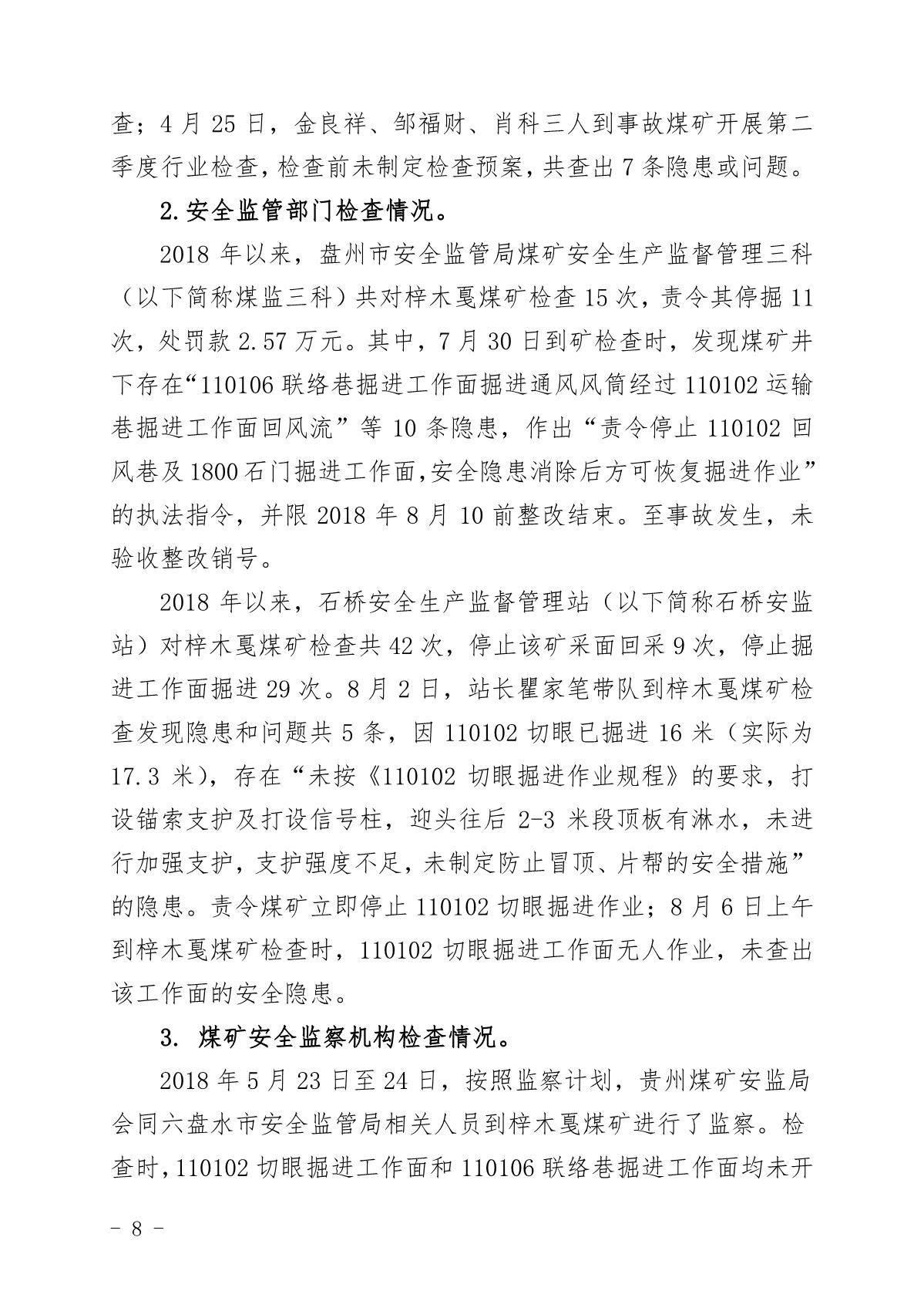 貴州六盤水梓木戛煤礦“8·6”重大煤與瓦斯突出事故調查報告