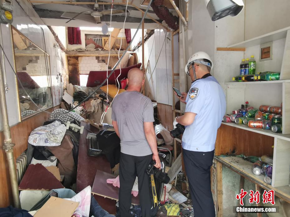 8月5日早8時左右,位于哈爾濱市道里區安順街的一家餐館發生疑似燃氣爆炸,現場一片狼藉,爆炸震碎二樓樓板,一老人墜落受傷,餐館老板娘受傷嚴重,目前兩人已被送往醫院就醫。爆炸造成路邊多輛車輛受損,附近居民樓玻璃被沖擊波震碎。中新社記者 范英杰 攝