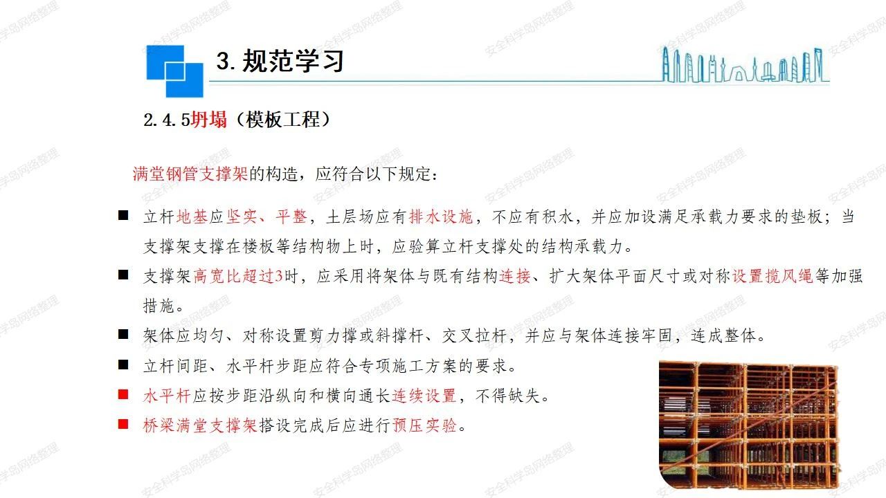 (2)支架、腳手架等搭設(shè)完成后應(yīng)組織相關(guān)部門驗(yàn)收。支架還應(yīng)按方案要求進(jìn)行堆載預(yù)壓。