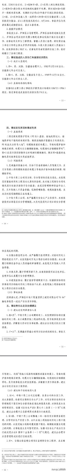 12月2日,合肥應急管理局在其官網發布廬陽區中鐵十局集團第三建設有限公司 “816”觸電事故調查報告。