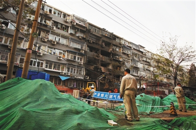 記者在現場看到,在該小區1號樓與5號樓中間,有一條東西向橫穿小區的改造路段,由綠色遮避物蓋著隆起的土堆。而在靠近1號樓的空地上有一小溝,無遮避物掩蓋。“這個溝是今天(4月10日)上午新挖的,不知道里面是什么?!?/div>