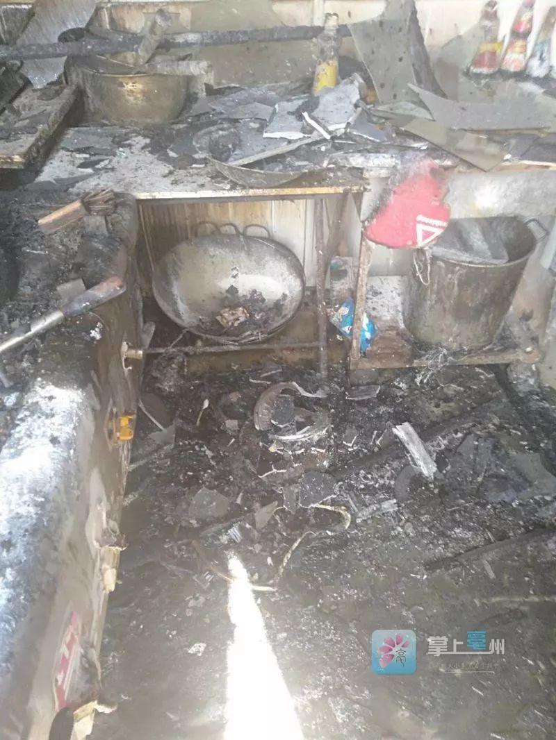 4月6日上午,亳州市區和諧佳苑鳳凰城的一家飯店后廚因燃氣管道泄漏發生火災,房屋和店內物品受損嚴重。