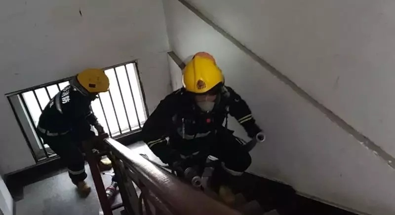 消防隊員到場后,立即帶上面罩查看現場。經過勘查發現,起火部位為四層廚房,著火物質為廚房雜物與廚房木質家具。由于廚房內的煤氣罐隨時都有爆炸的可能性,現場指揮員當即下令,立即疏散周圍圍觀的群眾,以免造成人員傷亡。隨后,消防隊員們立即拿出2支水槍從門口對火勢進行打擊,隨后消防員頂著煙霧沖進了廚房,將廚房內的煤氣罐拎到室外安全區域,經過近40分鐘的緊張處置、散煙,現場明火被全部撲滅。