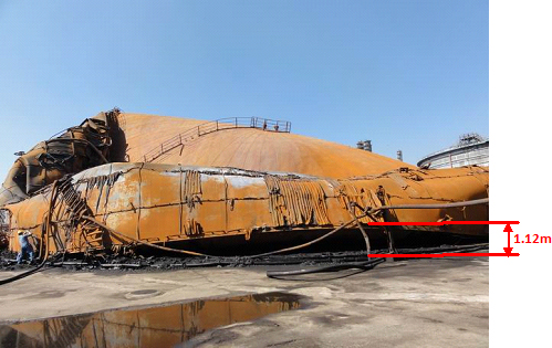 875#罐被燒整體坍塌,南側罐壁由15.86米坍塌至4.35米,見圖2。
