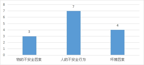 (三)按事故原因統(tǒng)計(jì):三季度,人的不安全行為造成7起事故,7人死亡;物的不安全因素造成1起事故,3人死亡;環(huán)境因素造成4起事故,4人死亡。 電力人身傷亡事故不同原因死亡人數(shù)