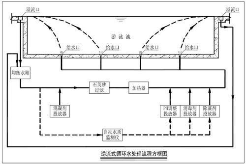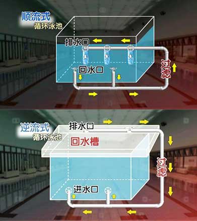 了解更多+逆流式水循環方式:全部循環水量由設在池壁的可調布水器送入池內,由設在池壁外側的溢流回水槽取回相應體積的使用過的池水,進行游泳池凈化(泳池加藥、泳池過濾、泳池消毒)后,再送回游泳池內繼續使用的水流方式。