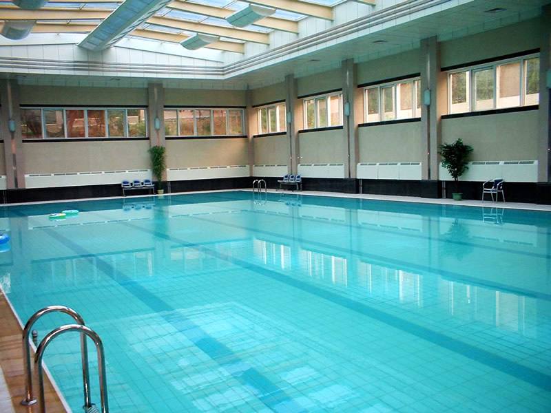 三、裝飾材料:由于游泳池室內(nèi)濕度較大,各種飾面材料應(yīng)慎重選用,墻面宜用淺色大理石或釉面磚,而不宜用油漆或涂料,地面宜用防滑地磚,切忌用花崗巖;天花板宜用鋁板或鋁塑板,避免使用木質(zhì)材料。屋頂網(wǎng)架設(shè)計(jì)應(yīng)考慮2點(diǎn):一是網(wǎng)架應(yīng)便于今后防腐處理,高檔泳池可用不銹鋼網(wǎng)架;二是網(wǎng)架玻璃應(yīng)能清洗,尤其是公路邊的建筑,大面積的玻璃十分易積塵。水下部分的進(jìn)出水口、爬梯等應(yīng)用不銹鋼制品;溢水溝蓋板常用塑料格柵,但這種格柵清洗十分困難。