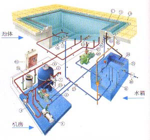 游泳池循環(huán)水處理設(shè)備是我公司在參照國內(nèi)外同類產(chǎn)品的基礎(chǔ)上,結(jié)合我國實際情況研制開發(fā)的游泳池水處理設(shè)備。適用于各類游泳池水的循環(huán)處理。它包括常規(guī)發(fā)毛收集器,多介質(zhì)石英砂過濾器及熱交換器。其特點是配備了絮凝劑自動投加系統(tǒng),水質(zhì)PH自動調(diào)整,消毒劑自動添加的監(jiān)控系統(tǒng),從而確保了游泳池水質(zhì)澄清度,PH值和最佳余氯濃度(保持無菌)。且占地面積小,運行管理方便,維護(hù)量小,大量的省藥劑費用和避免多投藥劑污染水質(zhì),適用于高檔賓館,飯店娛樂池及比賽池,家庭泳池等。