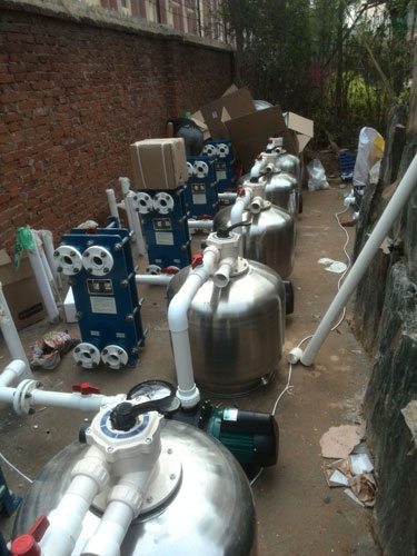 游泳池及水上樂園水過濾循環(huán)處理設(shè)備及游泳池加熱設(shè)備安裝現(xiàn)場: