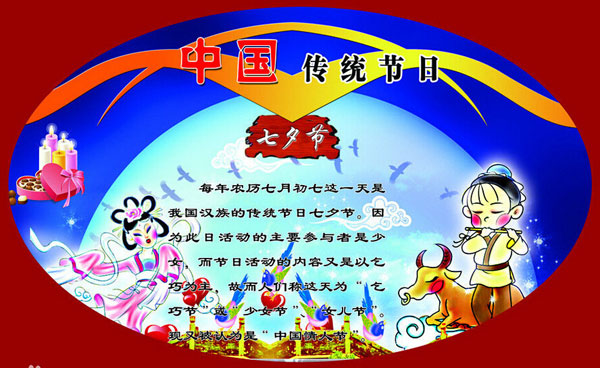 其起源于對自然的崇拜及婦女穿針乞巧,后被賦予了牛郎織女的傳說使其成為象征愛情的節日,F被認為是“中國情人節”。