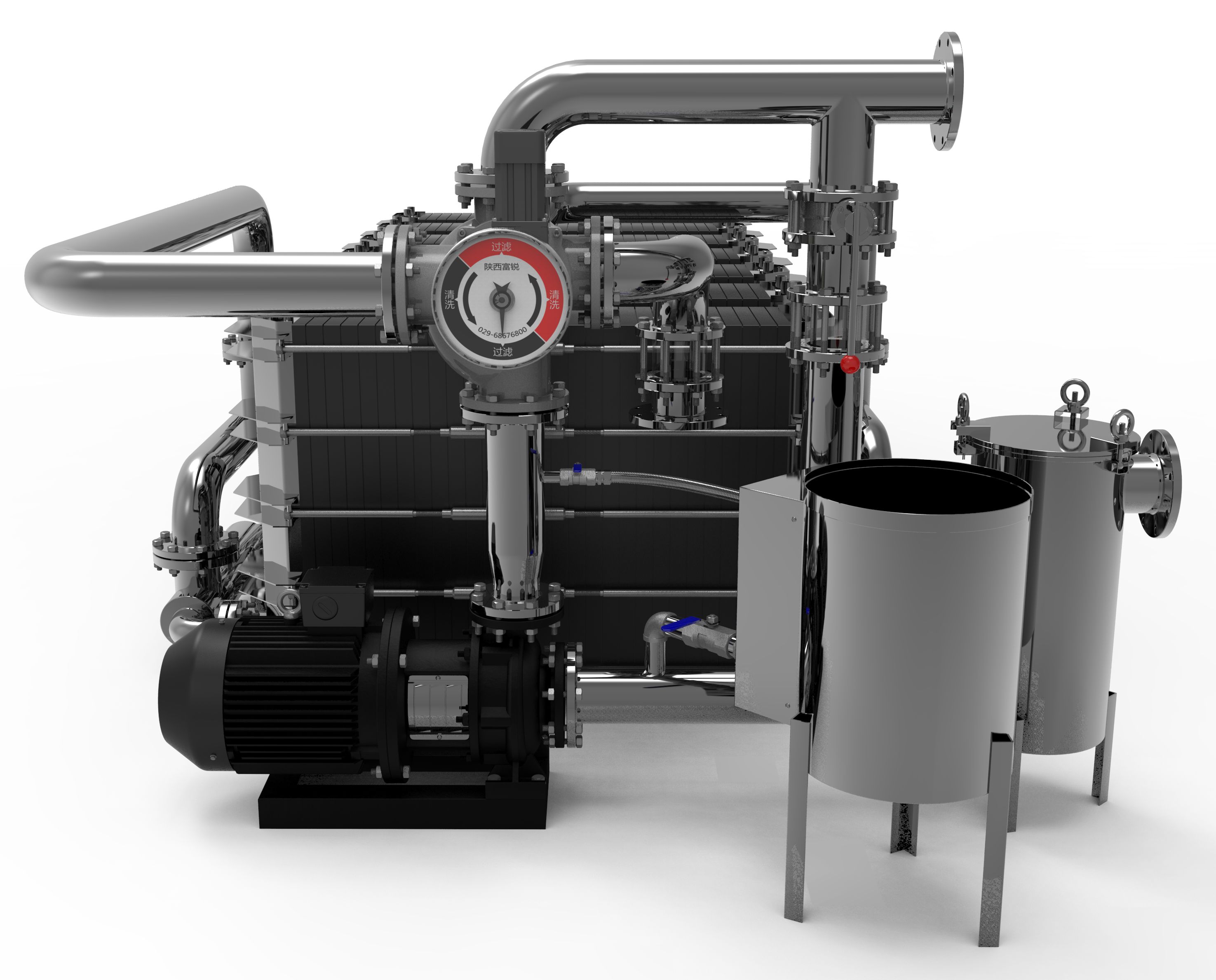 加熱系統主要有二個循環回路,其一為熱水鍋爐與保溫水箱之間的循環回路,其二為保溫水箱與板式換熱器之間的循環回路。