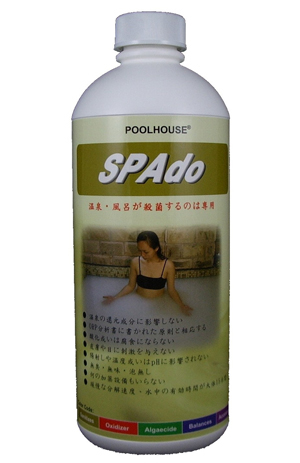 •   SPAdo溫泉殺菌劑是溫泉、藥浴用最佳的非氯系消毒殺菌劑,兼具殺菌劑、滅藻與澄清的功效,不會應先溫泉還原成份,水中有效時間至少15天。