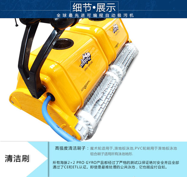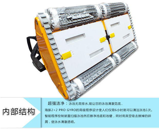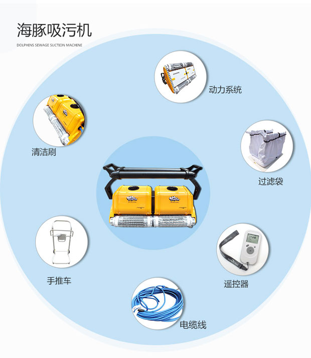 海豚2×2游泳池吸污機(jī)獨(dú)立操作,耗電量低,清掃、洗刷、過濾讓您的泳池清潔無后顧之憂,集新性能與改進(jìn)性能于一體,可完成擦洗、清掃、真空吸附及過濾工作,使你的泳池清澈見底。
